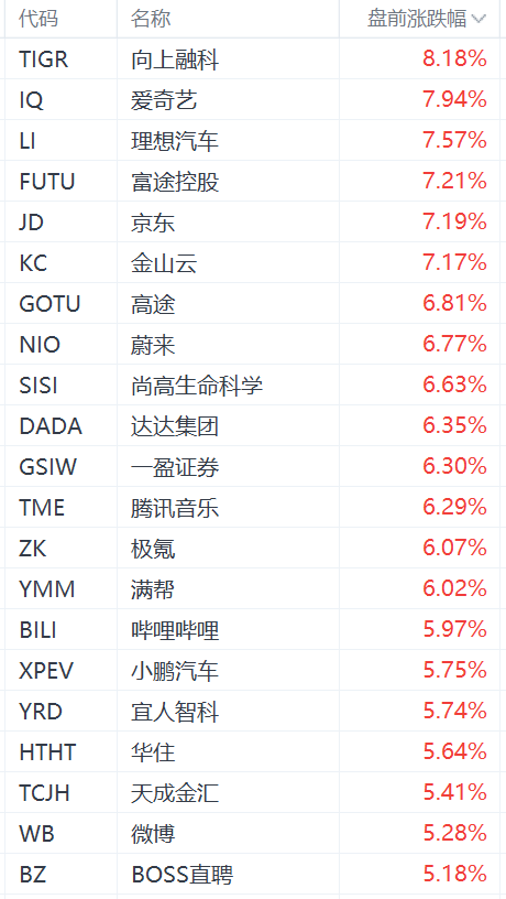 格隆汇9月24日|港A股市飙升,刺激美股市场热门中概股盘前集体大涨。其中,老虎证券涨超8%镇江期货配资,爱奇艺、理想汽车、富途、京东、金山云涨超7%,高途、蔚来、达达集团、腾讯音乐、极氪、满帮涨超6%,哔哩哔哩、小鹏汽车、华住、微博、BOSS直聘涨超5%,阿里巴巴、贝壳、网易、有道、拼多多涨超5%,百度、虎牙、雾芯科技、携程网涨超3%。